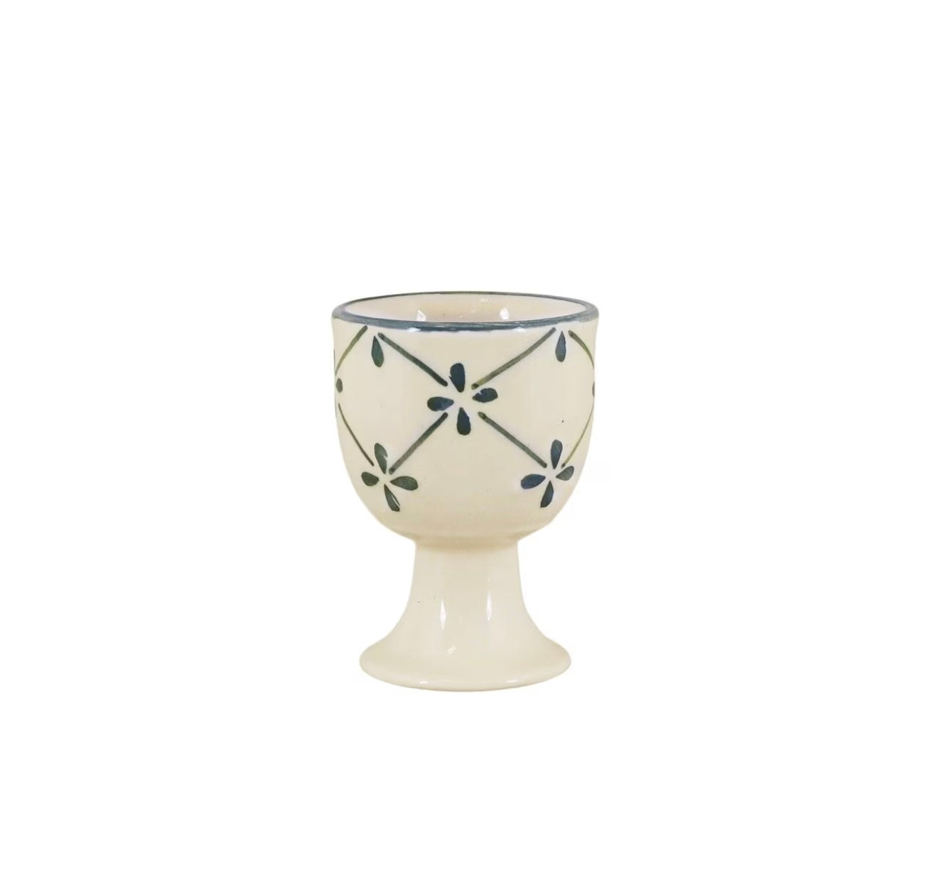 Äggkopp i stengods med handmålat motiv av ett dekorativt rutmönster. Mönstret i serien Marion associerar tankarna till den franska landsbygden. Fina att kombinera och blanda med de andra motiven. Variationer kan förekomma i porslinet.