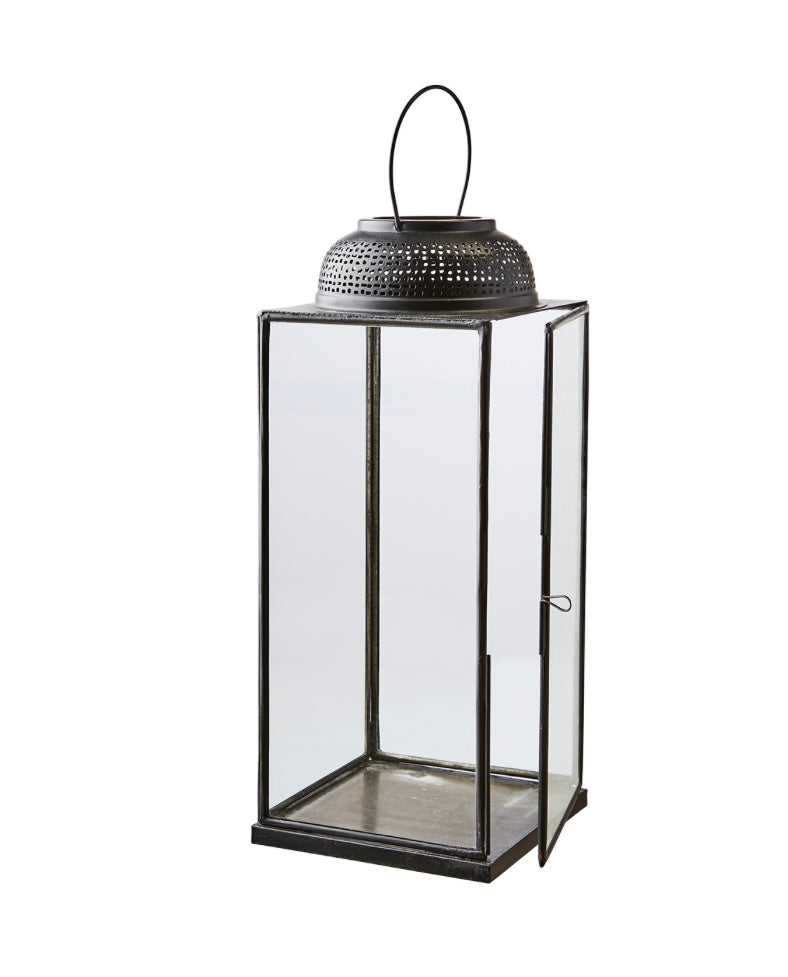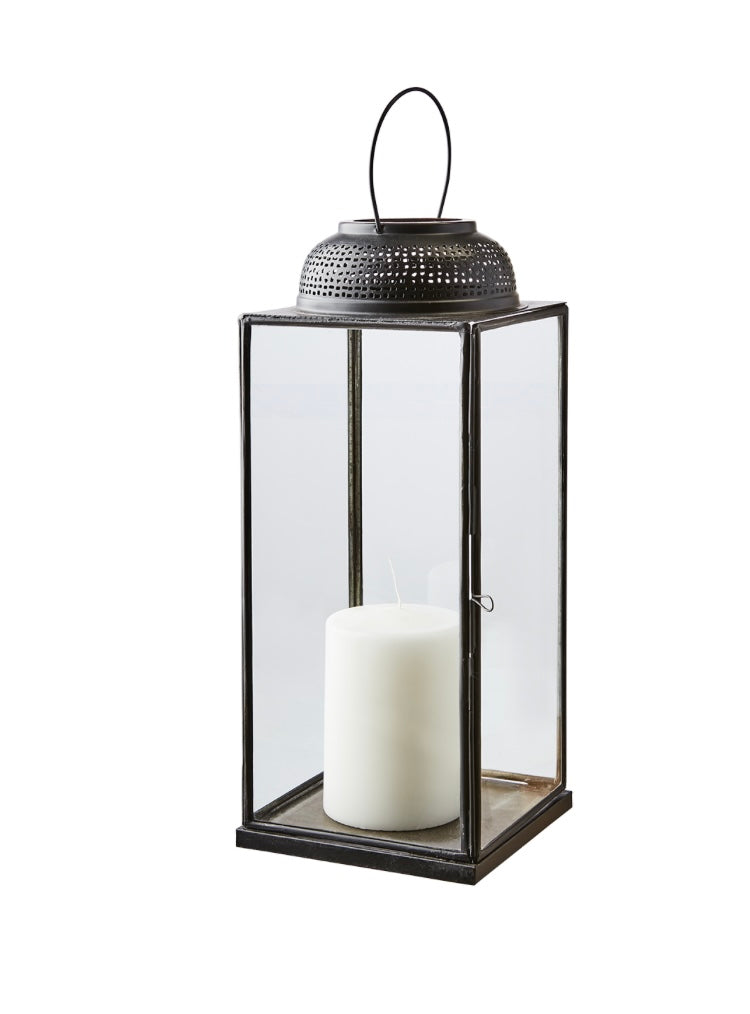 Skapa en stämningsfull atmosfär med ALMA Lykta M i Svart från Affari of Sweden. Denna stilrena lykta kombinerar svartmålat järn med klara glasrutor och en diskret handtag i metall, vilket ger en modern och tidlös känsla. Perfekt för både inomhus- och utomhusbruk, och passar utmärkt för värmeljus eller blockljus.