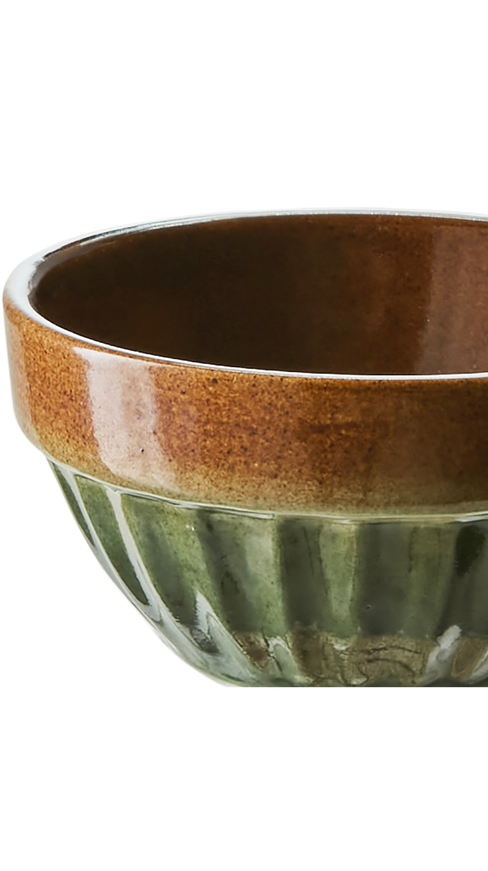 Upplev COSTA Skål S i grön/brun stengods (Ø 10,5 cm × H 5,5 cm) från Affari of Sweden – en liten men uttrycksfull skål med djup i både färg och form. Den kombinerade glasyrtonen i mossgrönt och rostbrunt skapar en rustik, organisk estetik som blir en vacker accent i alla dukningar. Varje exemplar är unikt tack vare glasyrens naturliga variation.