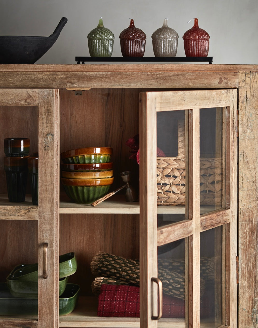 Jordnära färgpalett – grön och brun kombination ger en lugn, inbjudande känsla till bordet.