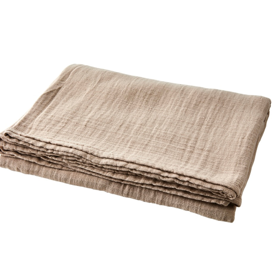 Ge dukningen en varm och neutral bas med Elsa Bordsduk i mjuk mörkbeige ton. Duken är tillverkad i slitstark, skrynklig bomull (muslin) som efter tvätt utvecklar en naturlig och avslappnad struktur – redo för användning utan att behöva strykas. Finns i två generösa storlekar 250 × 140 cm och 350 × 140 cm – perfekt för både vardagsbord och långbord vid festliga tillfällen.