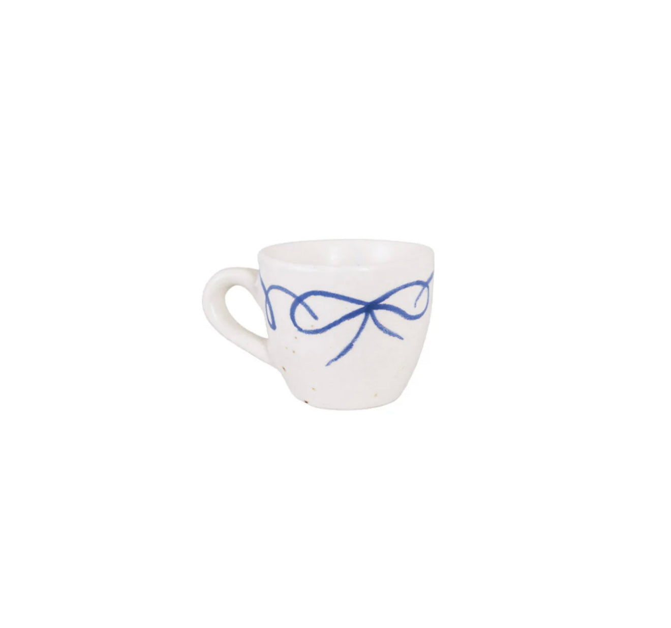 Liten söt kopp i stengodslera med prickar och en vackert handmålad bård med dekorativ rosett. Prickarna på stengodset blir olika tydliga, beroende på temperaturen som godset bränts i, likaså nyansen på leran. Kombinera gärna med fler delar i serien Viola för en fin helhet.