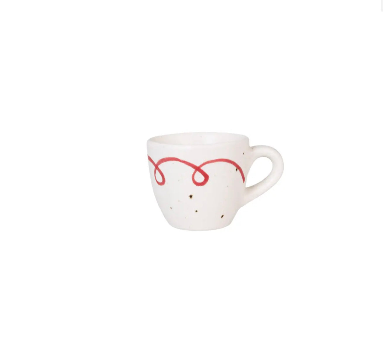 Liten söt kopp i stengodslera med prickar, vackert handmålad bård med dekorativ rosett. Prickarna på stengodset blir olika tydliga, beroende på temperaturen som godset bränts i, likaså nyansen på leran. Koppen är passande till olika sorters kaffe men också perfekt till glöggen. Kombinera gärna med fler delar i serien Viola för en fin helhet.