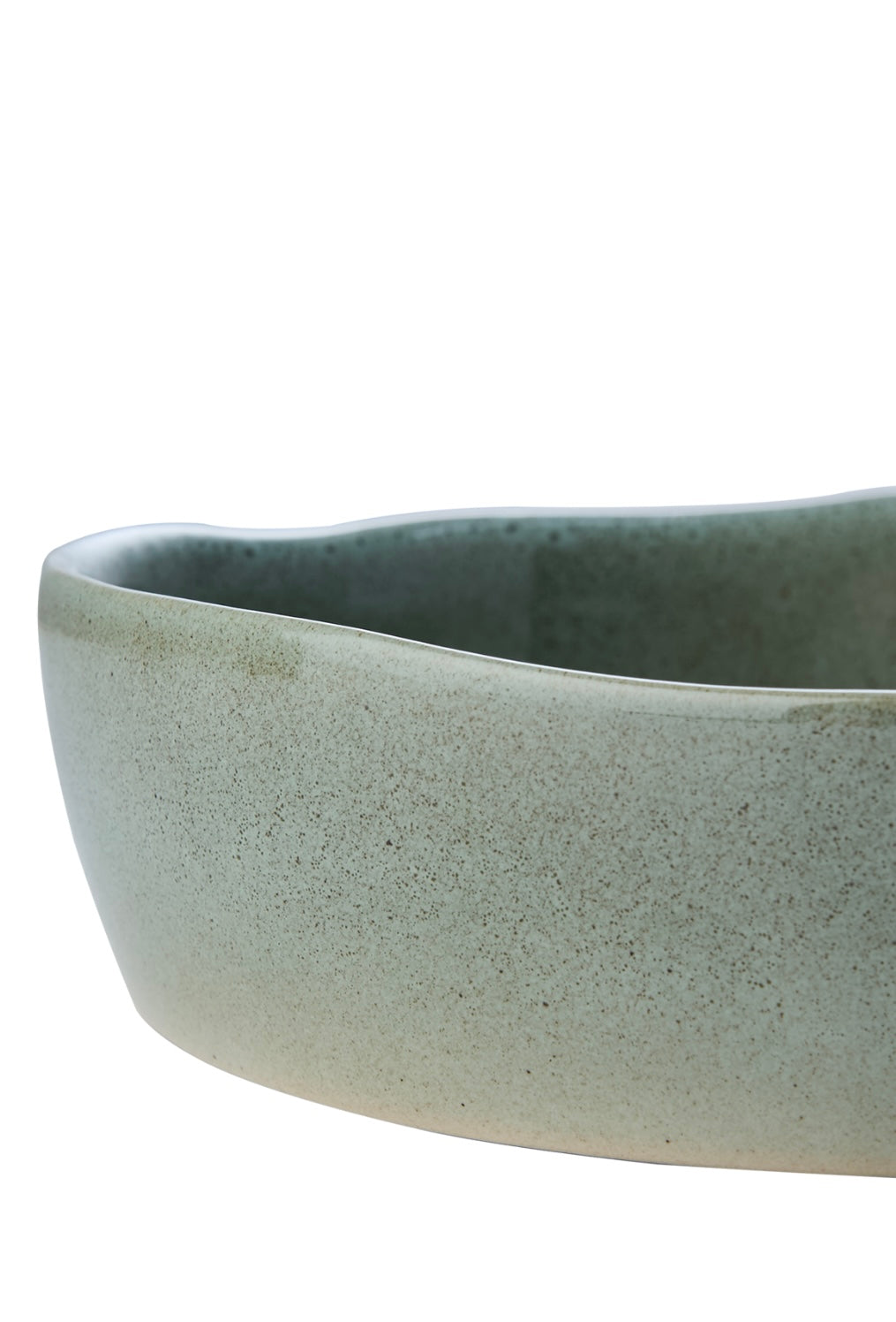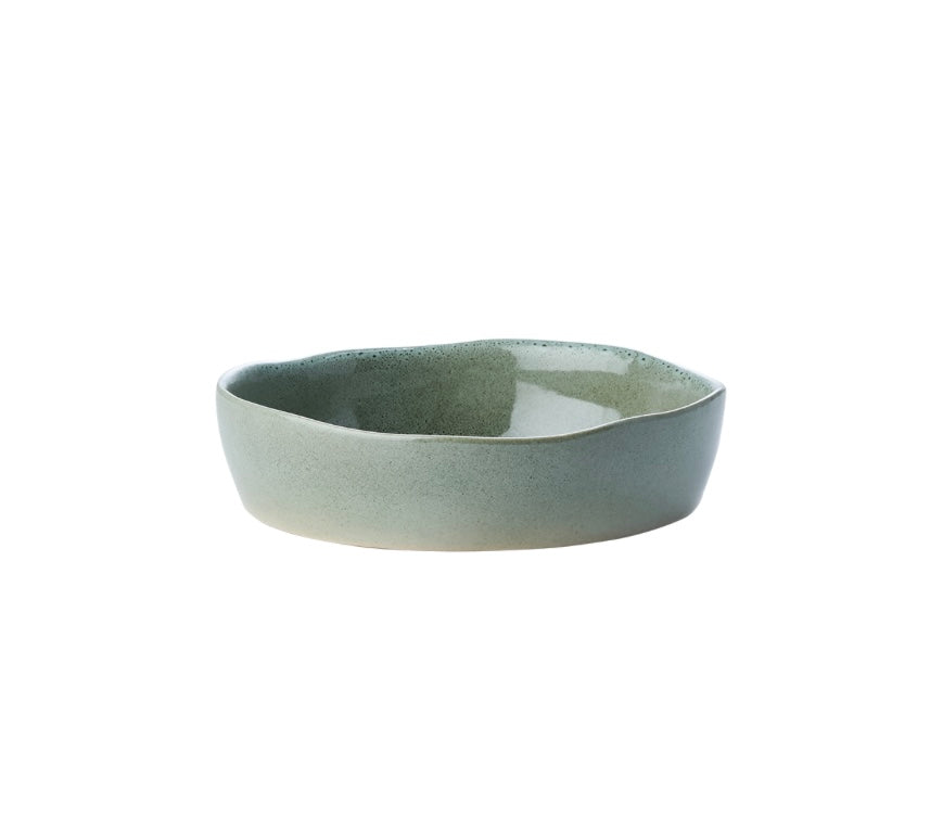 Upplev den rustika elegansen hos HILMA Skål i grön stengods (Ø 19 cm × H 5 cm) från Affari of Sweden. Den handgjorda ytan och den mjuka gröna glasyren ger varje skål en unik karaktär, vilket gör den till ett stilfullt val för både vardagsbruk och festligare tillfällen.
