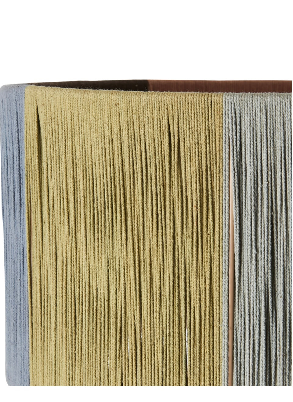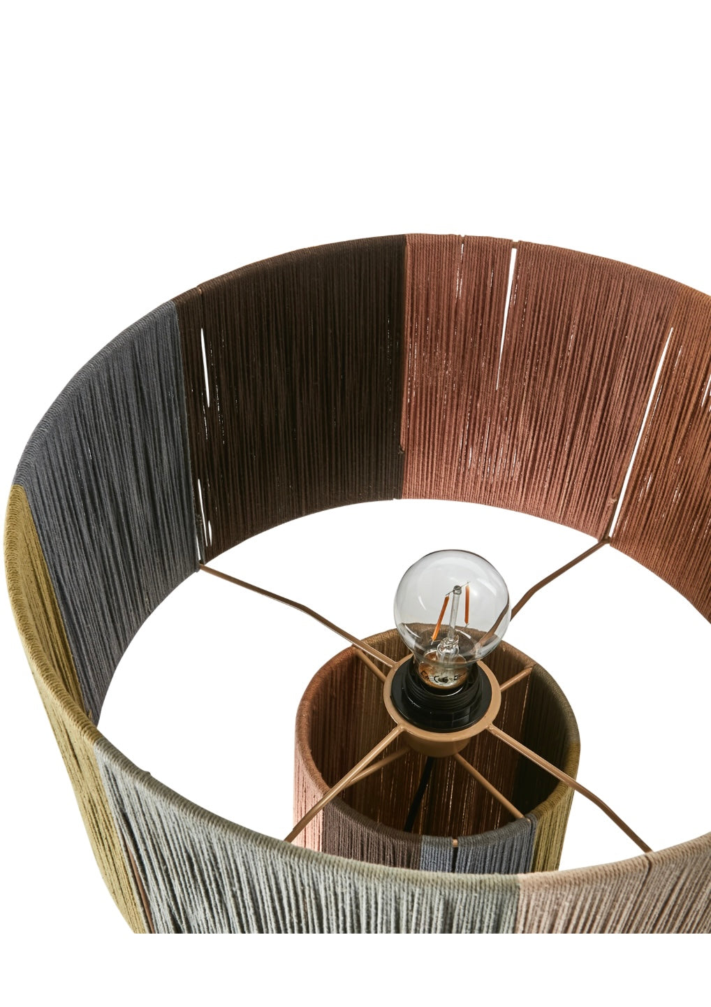 Unik flerfärgad design: Den randiga juteskärmen skapar ett varmt, mjukt ljus och ger liv till både loungehörnor och skrivbord.