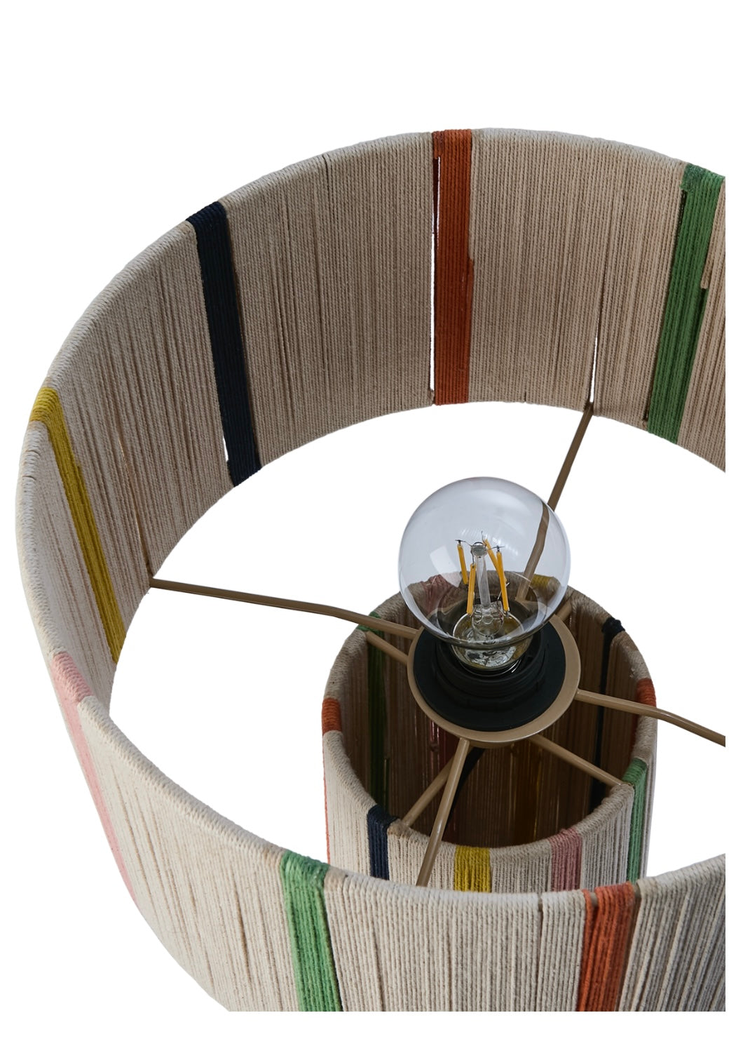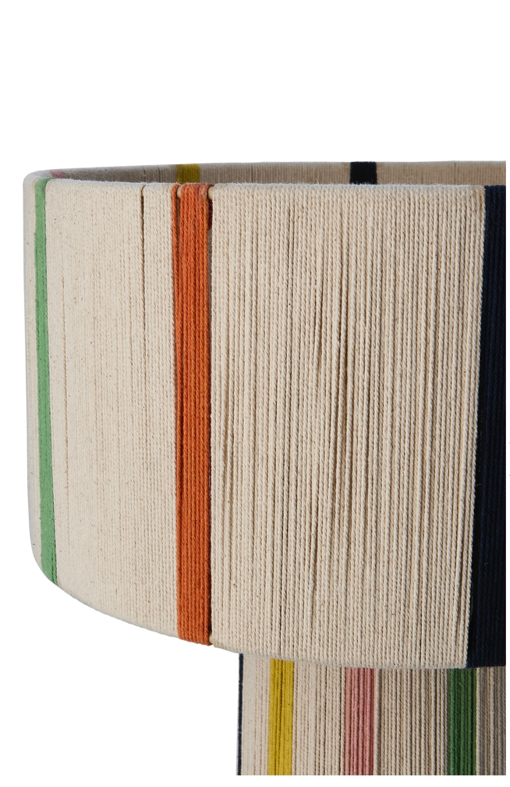 JULLAN bordslampa i randig, flerfärgad design är en lekfull och stilfull inredningsdetalj som ger ett varmt och mjukt ljus. Med sin unika färgsättning blir den ett naturligt blickfång och passar lika bra i vardagsrummet som på nattduksbordet eller i hallen. Lampans klara färgkombinationer gör den rolig att matcha i olika miljöer, oavsett om du föredrar en bohemisk, modern eller retroinspirerad stil. En färgstark lampa som skapar en inbjudande atmosfär.