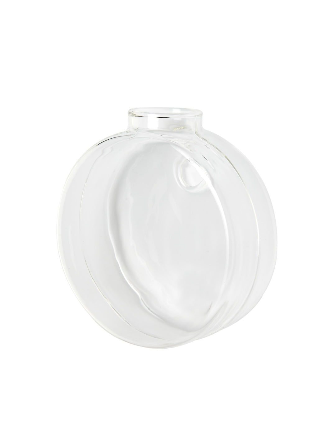 Munblåst. Bubblor och ojämnheter kan förekomma.