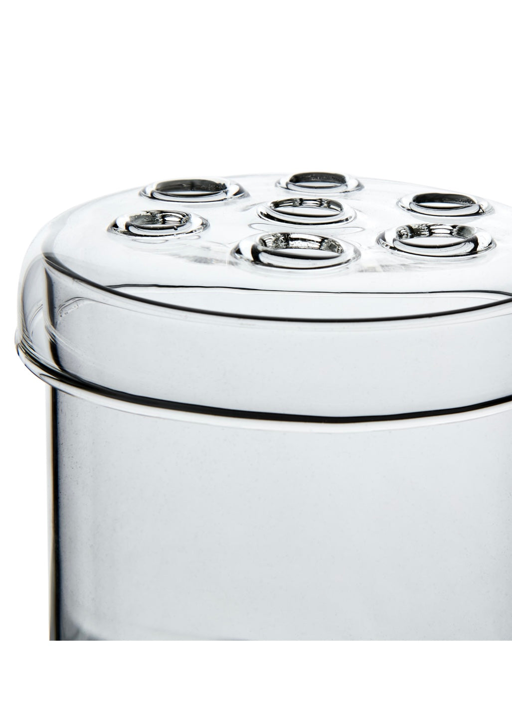 Munblåst. Bubblor och ojämnheter kan förekomma.