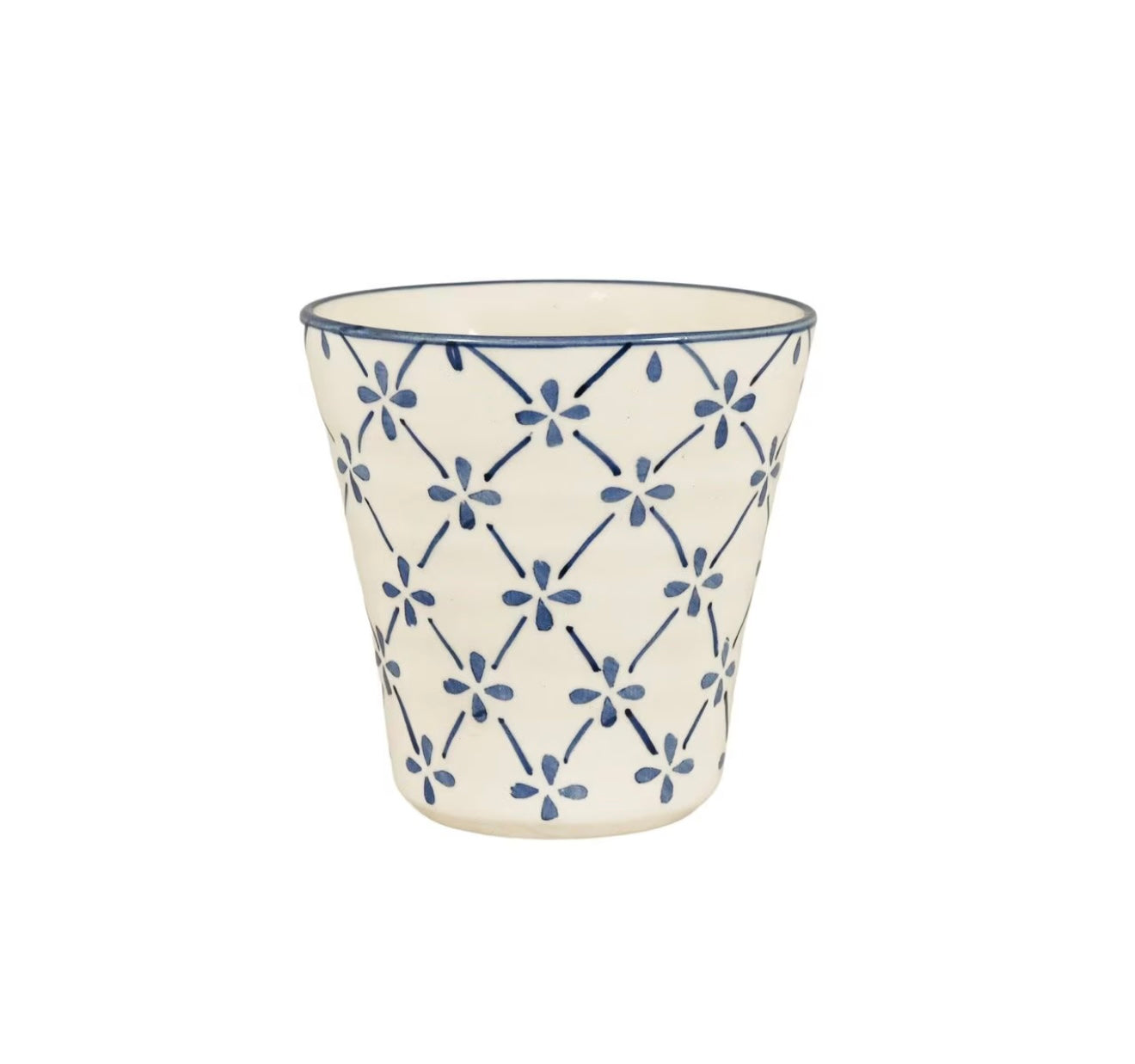 Mugg utan handtag i stengods med handmålat dekorativt rutmönster. Mönstret i serien Marion associerar tankarna till den franska landsbygden. Fina att kombinera och blanda med de andra motiven. Variationer kan förekomma i porslinet.