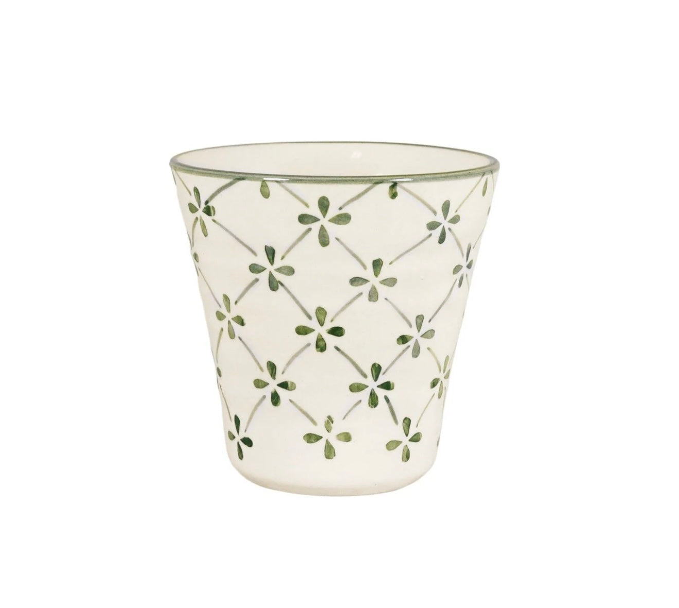 Mugg utan handtag i stengods med handmålat dekorativt rutmönster. Mönstret i serien Marion associerar tankarna till den franska landsbygden. Fina att kombinera och blanda med de andra motiven. Variationer kan förekomma i porslinet.