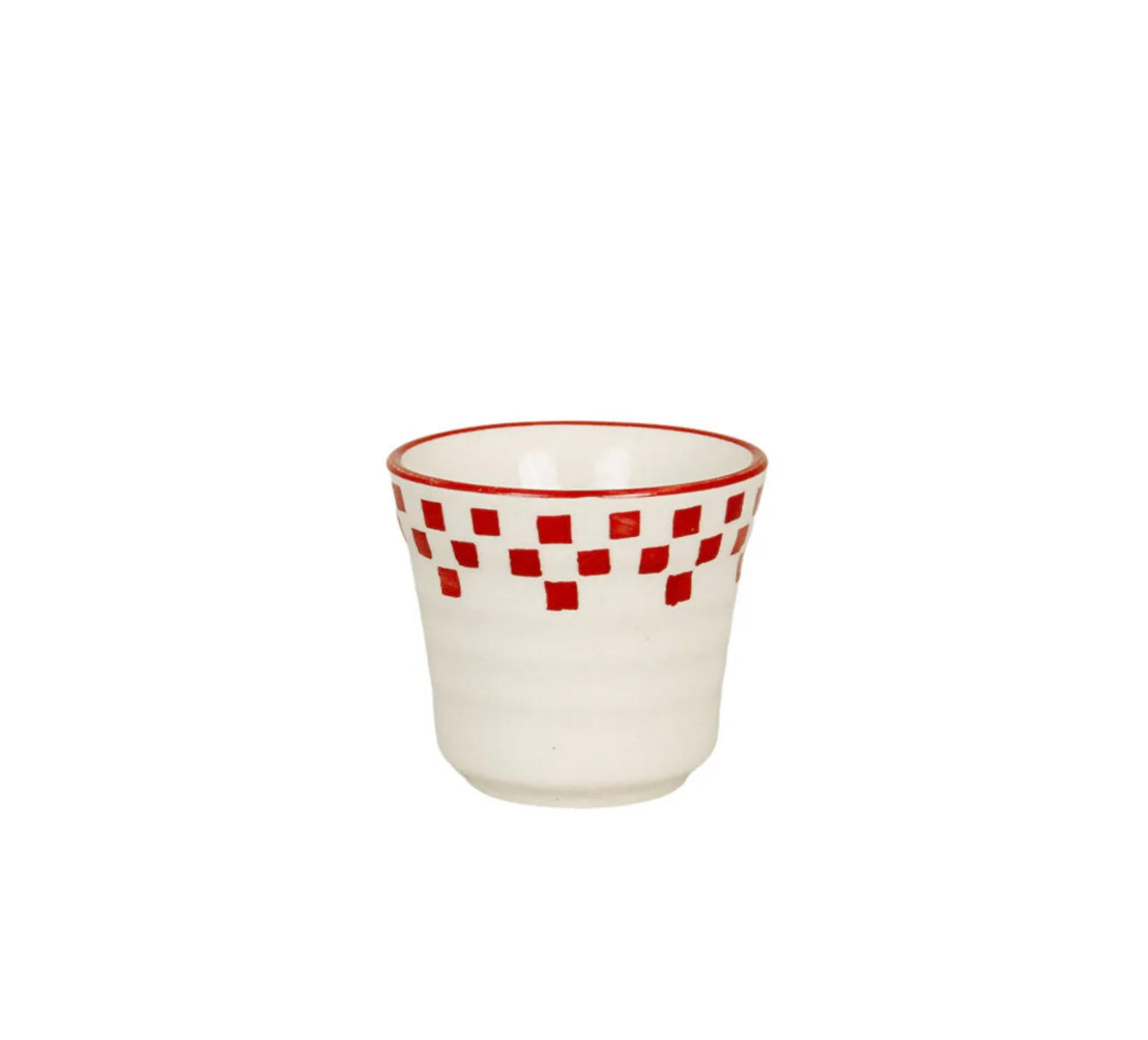 Serien Marion har utökats med ytterligare en färg, denna gång i härligt rött och i mindre storlek passande för din espresso eller som glöggmugg. Muggen utan handtag är i stengods med handmålad dekorativ bård. Mönstret i serien Marion associerar tankarna till den franska landsbygden. Fina att kombinera och blanda med de andra motiven/färgerna. Variationer kan förekomma i porslinet.