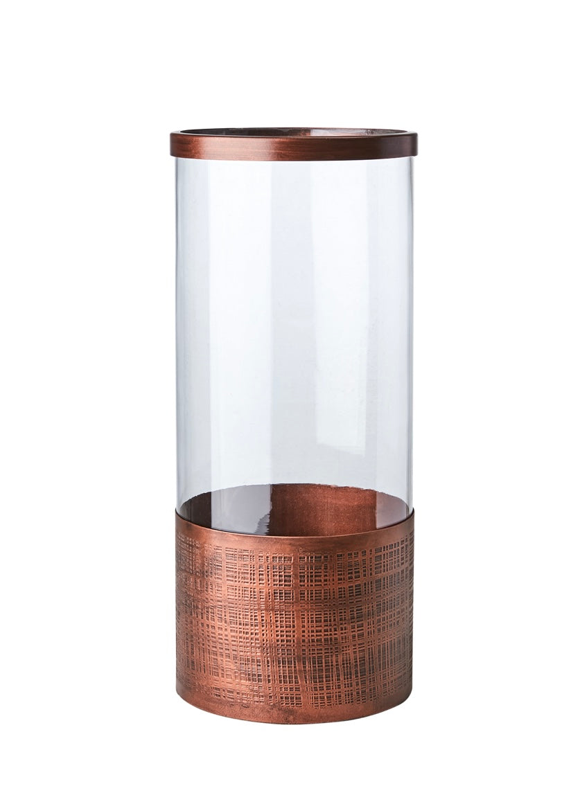 Skapa en stämningsfull atmosfär med MINSK Lykta i kopparfärgad finish från Affari of Sweden. Denna stilrena lykta kombinerar klart glas med en elegant kopparfärgad bas i järn, vilket ger ett sofistikerat och tidlöst uttryck. Perfekt för både inomhus- och utomhusbruk, och passar utmärkt för värmeljus eller blockljus.