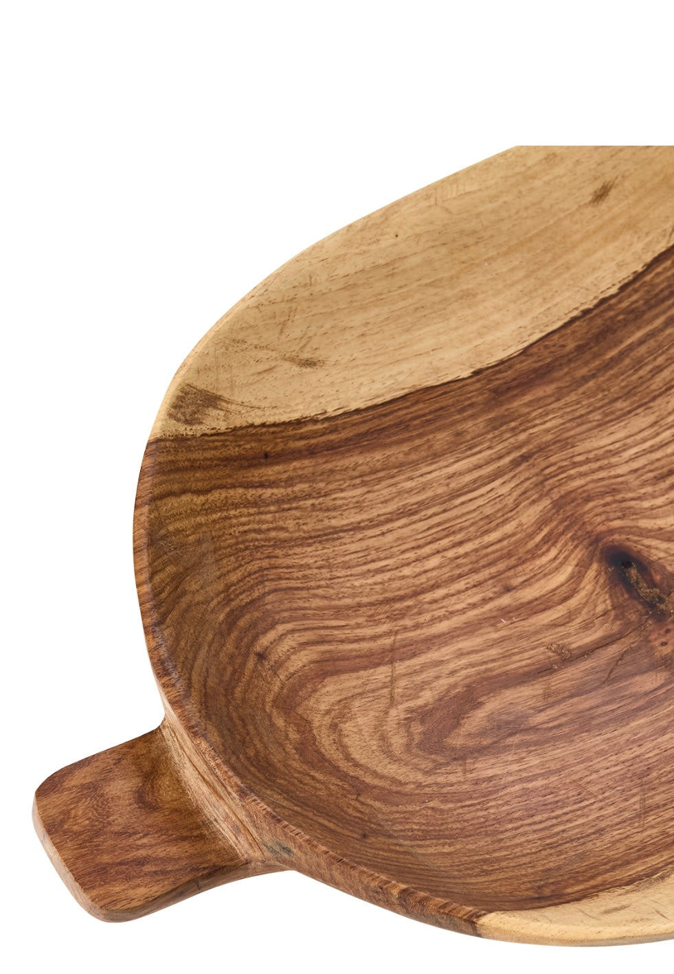 Fatet i naturfärg från Affari of Sweden är ett handgjort mästerverk tillverkat av hållbar teak. Med sina generösa mått och unika träådring blir varje exemplar unikt. Den naturliga teakfärgen och det gedigna hantverket ger en rustik och elegant känsla, perfekt som en dekorativ detalj i hemmet. Fatets organiska form och vackra trästruktur gör det till ett stilfullt inslag i inredningen. Observera att detta fat är avsett för dekorativt bruk och inte är matcertifierat.
