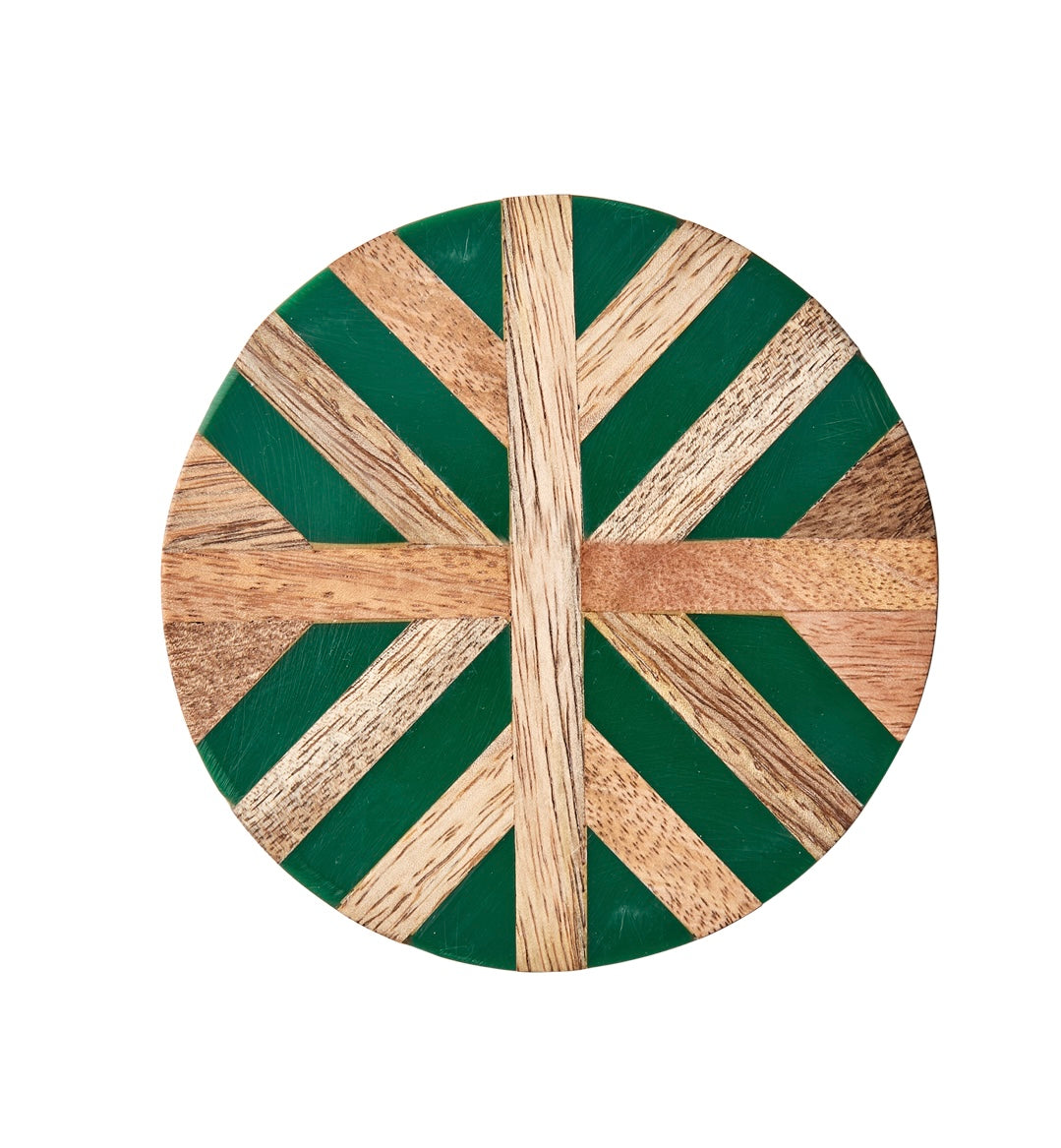 NICO glasunderlägg i natur och grönt är ett stilrent tillskott till dukningen. Det är tillverkat i trä och resin, där det naturliga materialet kombineras med en mjuk grön ton som skapar en harmonisk kontrast. Med sin runda form och släta yta skyddar det effektivt underlaget från ringar och fläckar, samtidigt som det adderar en dekorativ detalj till bordet. Perfekt för både vardag och fest, där varje detalj räknas.