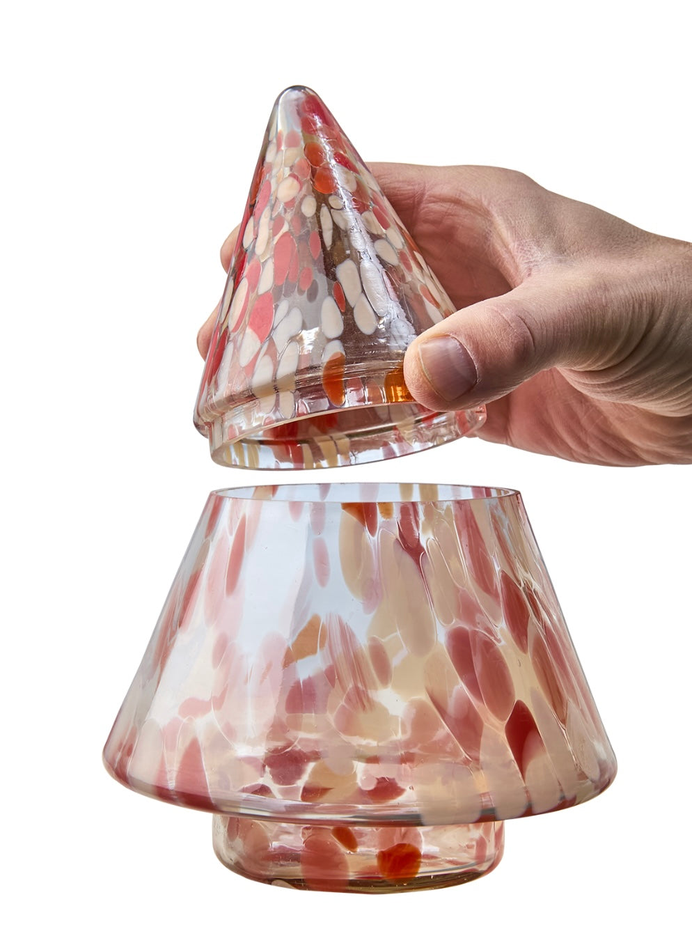 Munblåst. Bubblor och ojämnheter kan förekomma. Färgstyrkan kan variera.