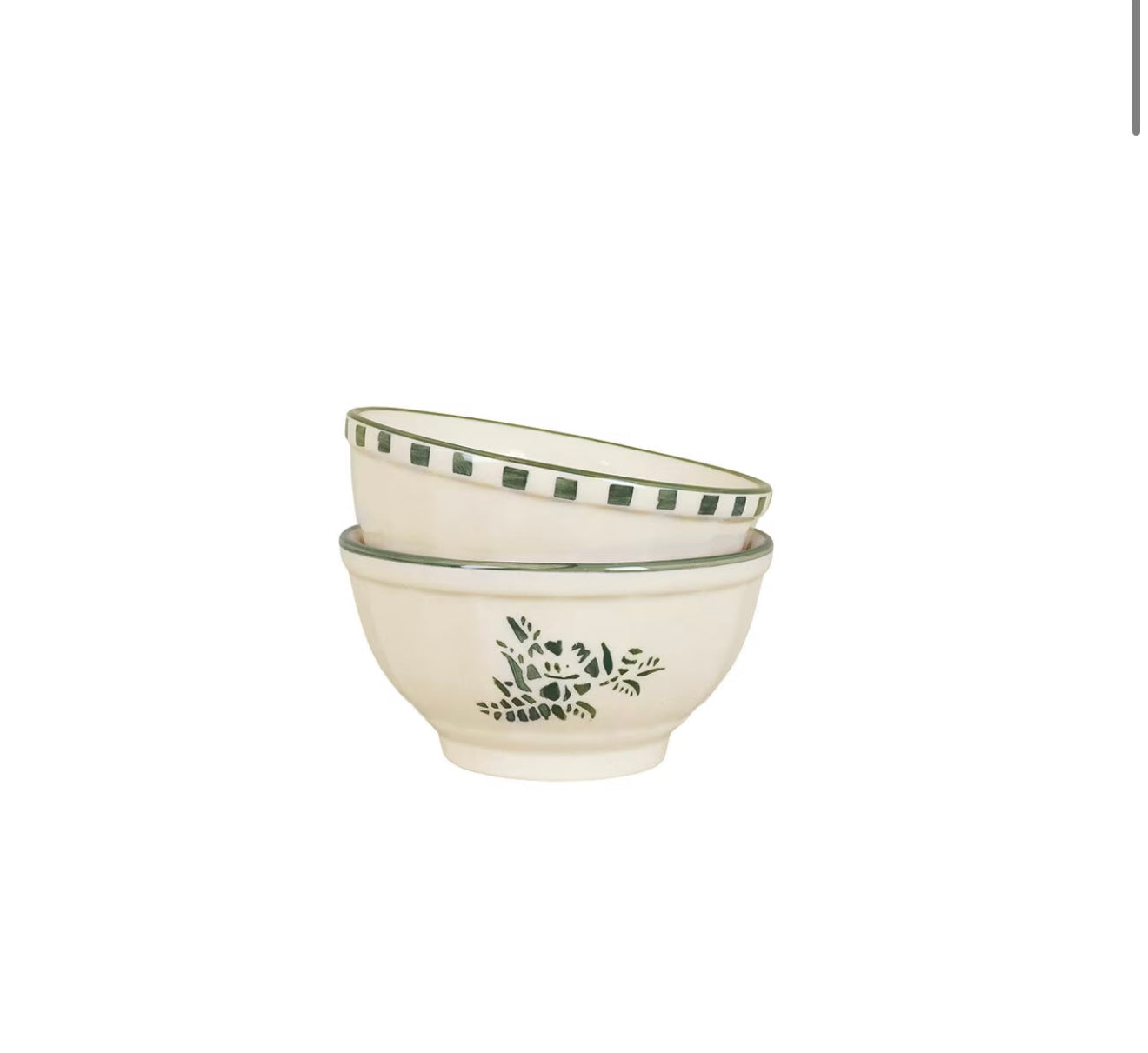 Skål i stengods med handmålat gammaldags motiv av en blomma och målad överkant. Mönstret i serien Marion associerar tankarna till den franska landsbygden. Fina att kombinera och blanda med de andra motiven. Variationer kan förekomma i porslinet.