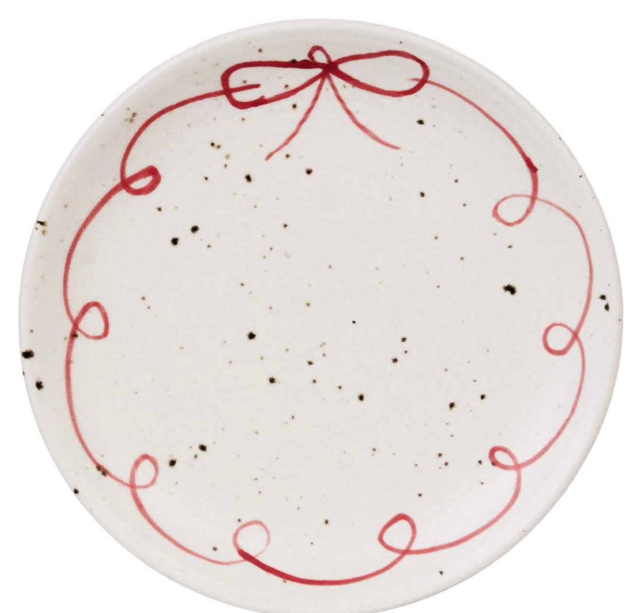 Tallrik i stengodslera med prickar och och en vackert handmålad bård med dekorativa rosetter. Prickarna på stengodset blir olika tydliga, beroende på temperaturen som godset bränts i, likaså nyansen på leran. Kombinera gärna med fler vackra artiklar ur serien Viola Rosett för att skapa ett komplett serveringsset som sprider en hemtrevlig och genuin känsla.