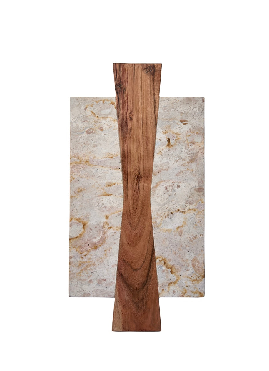 En elegant och funktionell skärbräda i beige butterscotch marmor och akasia trä, designad för både matlagning och servering. Marmor har en slitstarka yta som gör den idealisk för att skära bröd, frukt och grönsaker, medan den stilrena designen gör att den även fungerar som en dekorativ serveringsbricka.