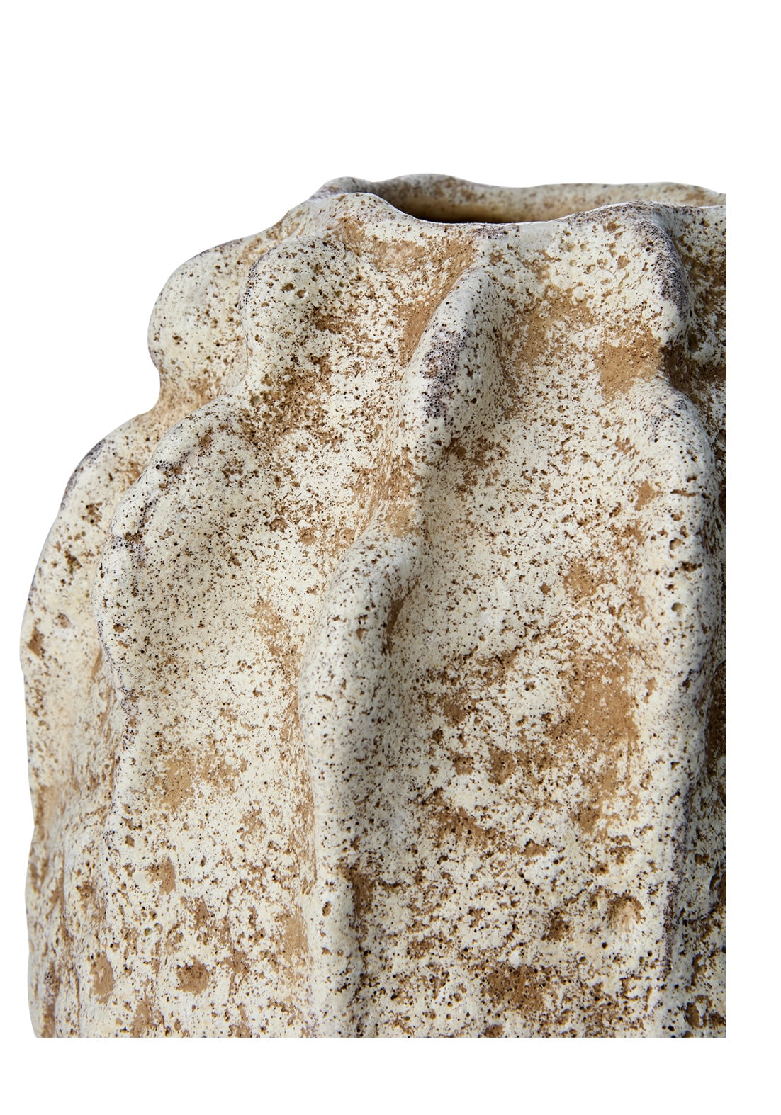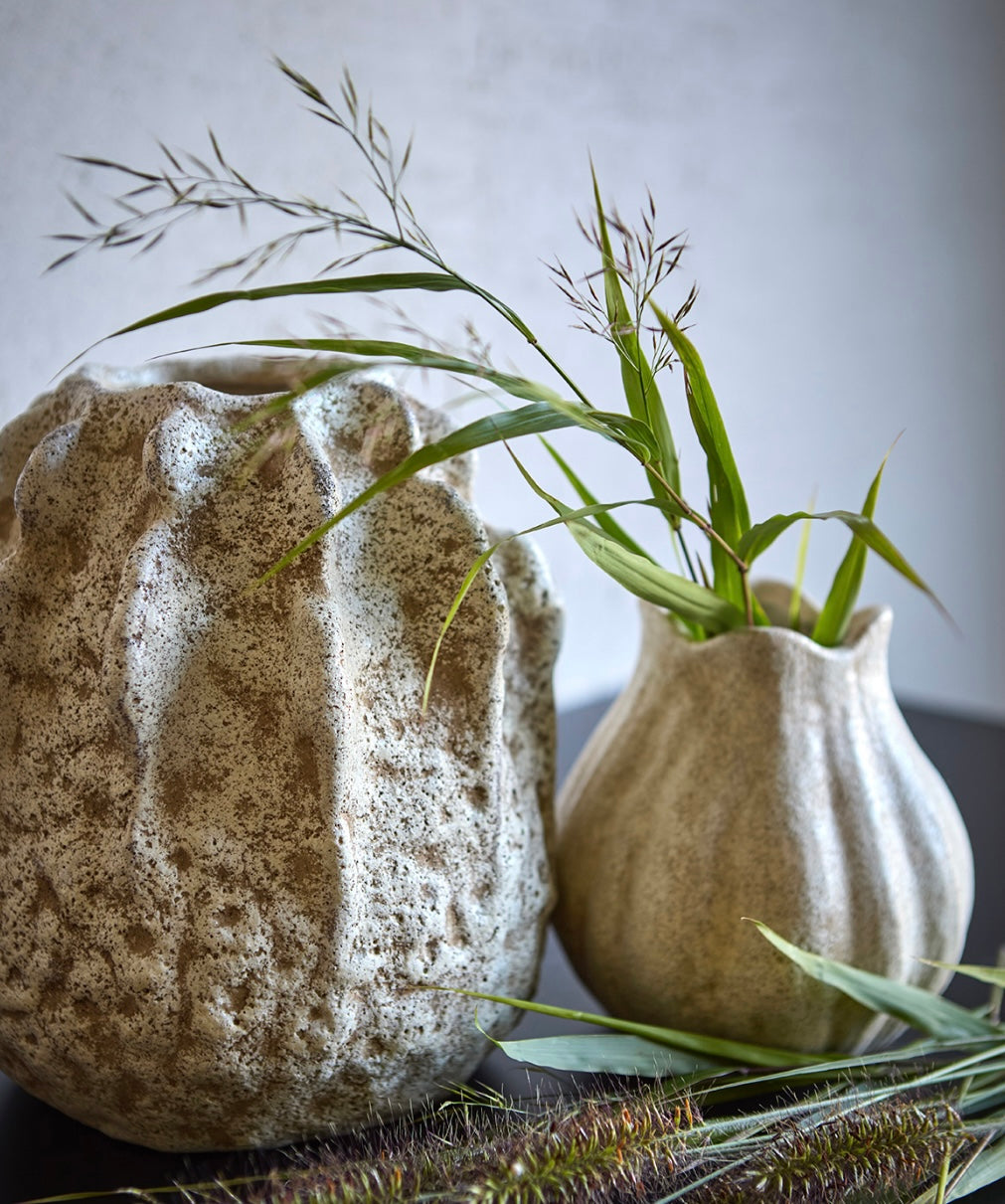 VIGGO vas i beige stengods har en tidlös och organisk design som kompletteras av en unik dubbelglaserad yta. Glaseringen skapar subtila nyansskiftningar som ger varje vas ett individuellt uttryck. Den harmoniska färgtonen gör att den passar lika bra med torkade blommor som med färska arrangemang, eller som en stilren dekoration i sig själv.